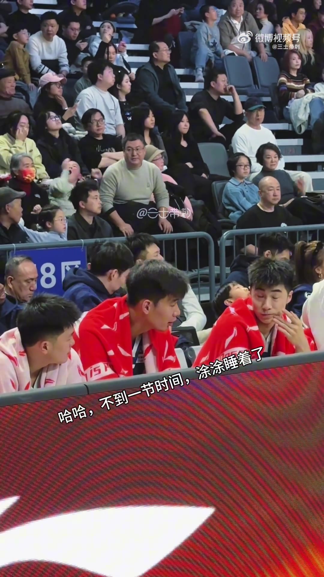 比赛太无聊?周琦带娃看星锐赛 小儿子涂涂看了不到一节睡着了